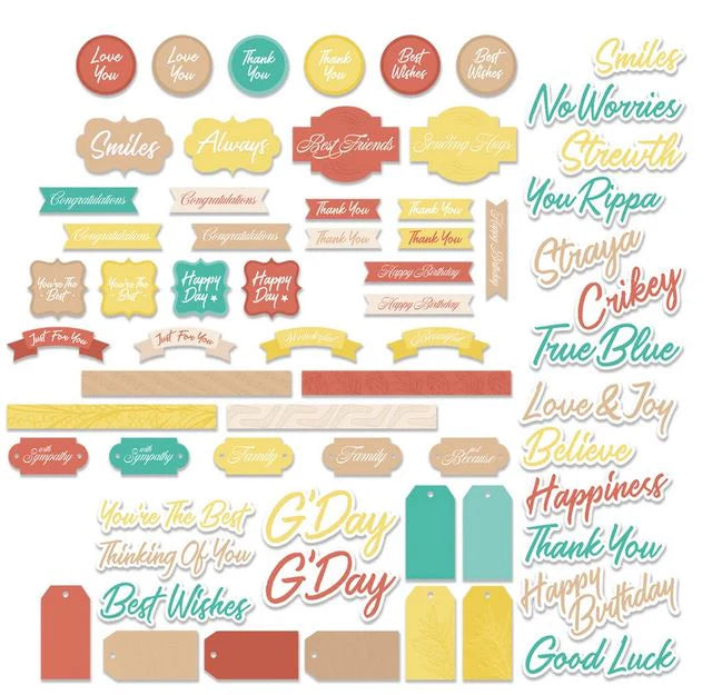 53 pce diecut embellishments, Australian themed